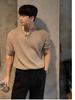 Erkek Modaya Uygun Bol Kesim Hong Kong Stili Örme Polo Yaka Tişört - Kısa Kollu, Günlük Yaz Düz Renk Kazak Tişört