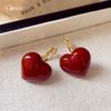 Retro Hong Kong Tarzı Şarap Kırmızısı Kalp Yağlıboya Küpe - Tatlı, Sade ve Şık.
