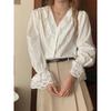 Fransız Mizaç Dantel Dantel V Yaka Gömlek Kadın İlkbahar Bol Kazak Üst
