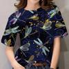 Summer Round Neck 3D Dragonfly Pattern Printed Top Fashionable Casual Short Sleeved Women's T-shirts