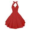 Retro A-line Büyük Salıncak Kolsuz Nokta Baskı Kontrast Renk Elastik Göğüs Boyundan Bağlamalı Yüksek Dar Bel Sırtı Açık Diz Boyu Abiye
