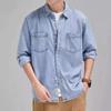 Erkek Slim Fit Kot Gömlek - Kore Tarzı, Uzun Kollu, Çiftler veya Öğrenciler için Trend ve Yakışıklı, İlkbahar ve Sonbahar için İdeal.