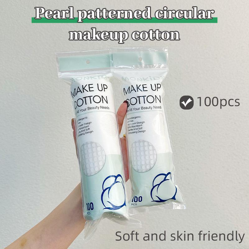 Büyük İnci Taneli Yuvarlak Pamuklu Makyaj Temizleme Pedleri - 100 Adet, Basılı Kenarlı Çanta