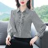 İlkbahar Sonbahar Zarif Kore Modası Ofis Hanımları İş Günlük Çizgili Baskılı Gömlek Uzun Kollu Üst Kadın Bluz