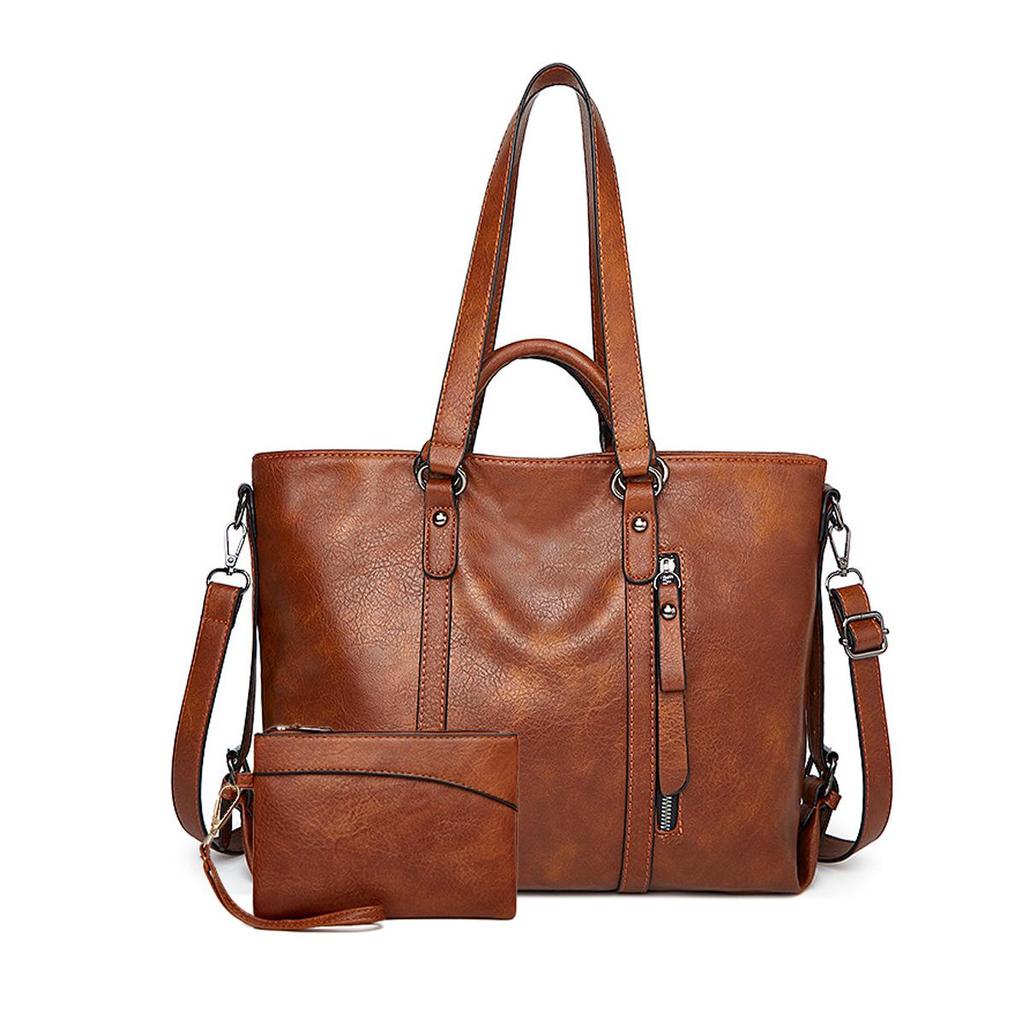 2024 Autumn Large-Capacity Retro Waxed Leather Shoulder & Crossbody Tote Bag for Women