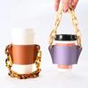 Portable PU Leather Heat-Resistant Tea & Coffee Cup Cover with Removable Pearl Chain