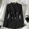 This stylish slim suit jacket is a perfect blend of European and American fashion influences. Crafted entirely from high-quality polyester, it offers a sleek and comfortable fit that enhances your silhouette. The standout feature is its striking metal lion head buckle, adding a touch of bold elegance to your ensemble. Ideal for both formal occasions and chic casual outings, this jacket is a versatile addition to any wardrobe.