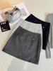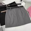 Gri Kadın İlkbahar 2024 Yüksek Bel A Kesim İş Eteği—İnce, Kısa Kalça Takım Elbise Eteği
