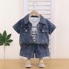 Kore Versiyonu Kısa Kollu Kot Gömlek Şort Takım Erkek Kız Yazlık Modaya Uygun İki Parça Takım