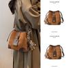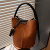 Tek renkli kadın kova çanta, basit tek omuz askılı çanta ile çok yönlü, retro ve çok yönlü