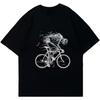 Bisiklet Sürme Baskılı Erkek Tişört Pamuk O Yaka Yıkanmış Tişört Yenilikçi Günlük Bol Ağartılmış Tişört