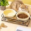 Ceramic Raised Pet Bowl with Iron Rack Food Water Treats for Cats Dogs Feeders Supplies Drinking Accessories Puppy Kitten