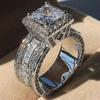 Huitan Klasik Tasarım Kadın Yüzükleri Nişan Düğün Lüks Prenses Kare Kübik Zirkonya Işıltılı Gelin Yüzükleri Takı