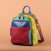 Women's Bag Colorful Color Contrast Geometric Pattern Hand Contrast Color Leisure Bag Genuine Leather Backpack