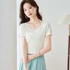 Women's New T-shirt Wool Acetate Lycra Soft U-neck Short Sleeve Skinny Tops