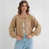 Women's Casual Loose Cardigan Tie Solid Color Sweater