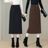 Kadınlar için Yüksek Belli Yünlü Yırtmaçlı A Kesim Etek - Midi Boy, Sonbahar/Kış