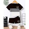 Sevimli Bebek Erkek Çocuk Yazlık 2'li Kıyafet Seti Yeni Baskılı Kısa Kollu Yama İşi Tişört Üst ile Şort Pantolon Takımlar