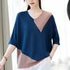 Yaz Kadın Bol Büyük Beden Kısa Kollu Üst Yuvarlak Yaka Renk Bloklu Yarasa Kollu Tişört