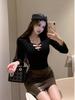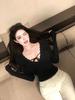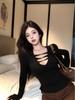 Baharatlı Kız Üst Sonbahar Kadın Giyim Dikkat Makine Seksi V Yaka Askılı Alt Uzun Kollu Dar Kesim Görünüm Örme Kazak