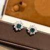 Gümüş Yeşil Yuvarlak CZ Saplama Küpeler Çiçek Şekli Basit Zarif Kadın Küpe Piercing Aksesuarları Yeni Takı