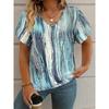 Moda Kadın V Yaka Tişört Yazlık Günlük Kısa Kollu Üstler Çok Yönlü Çizgili Stil Desenler Büyük Beden Bol Kadın Giyim