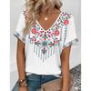 V-neck Women's Short Sleeve T-Shirt Summer Daily Casual Tops OverSize Loose Women's Clothing Flower Print Style Patterns