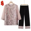 Büyükanne Yazlık Kıyafet Seti Orta Yaşlı Yaşlı Kadın Giyim Annenin Kısa Kollu İki Parça Seti Yaşlı Hanımın Yazlık Bol Hırkası