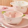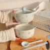 Kapaklı Sevimli Seramik Anlık Noodle Kasesi Öğrenci Yurdu Sıcak Geçirmez Çift Kulaklı Çorba Kasesi Mikrodalga Fırın İçin Uygun Sofra Takımı