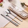 2/3 ADET paslanmaz çelik taşınabilir çatal bıçak takımı öğrenci açık havada güzel görünümlü Kore kaşık çatal ve yemek çubukları saklama kutusu hediye seti