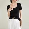 Solid Colour T-shirt Women 2024 Summer Simple U Neck Slim Stretch Body Shirt Tops