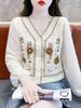 Kore Retro Gömlek Kısa Kesim Zayıflama Hollow Hook Çiçek V Yaka Gömlek Kadın Sonbahar Bol Patchwork Hırka Üst