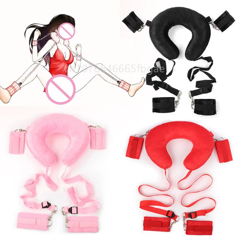 Soft Neck Pillow Open Leg Props Handcuffs Anklecuffs BDSM Bondage Kit Erotic Sex Toys for Couples Women Men Roleplay Adult Games