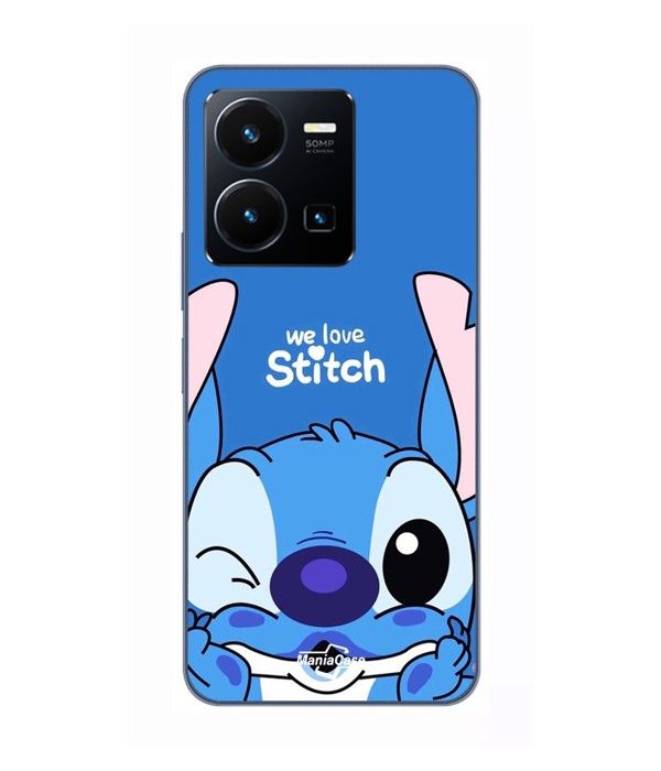 Coque Pour Vivo Y35 4G stitch cute ohana stitch bleu front bleu Maniacase