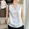 Women's Summer Loose V-neck Solid Color Casual Camisole Undershirt Sleeveless Satin Bottoming Tops