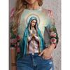 Yaz Meryem Ana 3D Baskılı Tişört Kadın Sokak Giyim Günlük Tişörtler Y2k Üstler Kadın Harajuku V Yaka Tişörtler Oversize Giyim