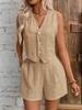 Pamuk ve Keten Yelek Şort Takım Yazlık Yolcu Yeleği + Şort Takım Günlük Takım Kadın