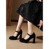 Siyah yüksek topuklu kadın kalın topuklu düğün ayakkabıları Mary Jane 2025 yeni çapraz bantlı kare burunlu derin ağızlı tek ayakkabı