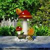 Outdoor Decor Accent: Elevate your garden, balcony, or porch with this cheerful mushroom sculpture bird feeder. Enhance your outdoor ambiance with a delightful courtyard decoration.