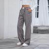 Kadın Pantolon Elastik Bel Orta Yükseklikte Geniş Paça Uzun Pantolon Cepli Ekose Baskılı Rahat Günlük Pantolon