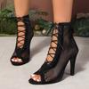 Avrupa ve Amerikan yazlık file dantel nakış moda yüksek topuklu havalı botlar balık ağzı çapraz bantlı Roma sandaletleri dış ticaret havalı botlar