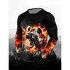 Men'S Fashion T-Shirt Animal Avatar 3D Digital Printing Trend Cool Long Sleeve Crew Neck T-Shirt