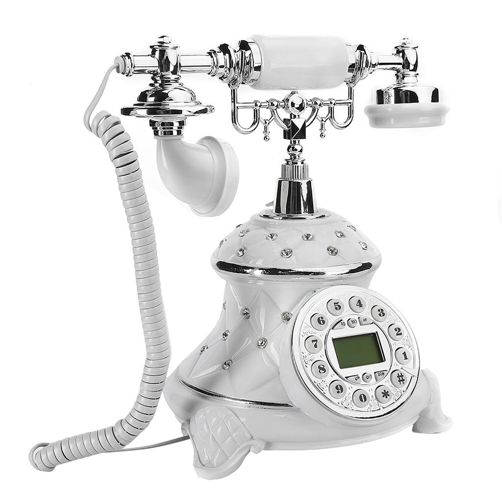 European Style White Embed Rhinestones Vintage Antique Old Telephone Home Landline
