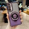 A 16 15 35 55 54 34 14 Luxury Plating Holder Case For Samsung Galaxy A55 A35 A25 A15 A16 A36 A54 A34 A14 5g Silicone Stand Cover