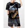 Çocuk Dinozor 3D Dijital Baskılı 2'li Set, Modaya Uygun Kısa Kollu Tişört, Şort, Yuvarlak Yaka Üst, Yaz Spor Giyim