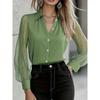 Women's Commuting Style Slim Fit Cardiga Button Double Door Tube Satin Lapel Long Sleeved Blouses & Shirts