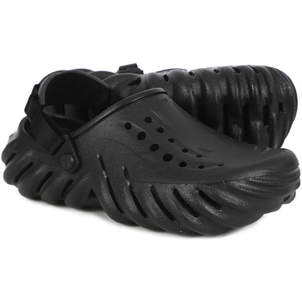 The Crocs Eco Clog Black is a clog that blends bold streetwear expressions with sports inspiration. It offers an impressively lightweight feel and practical wearability, made from a material that is safe in water and floats. It features ventilation holes that enhance breathability and allow for quick drying and easy cleaning. The Croslite™ structure and LiteRide™ drop-in footbed provide innovative comfort and a soft embrace for the foot. Additional comfort is provided by the heel pad in the back strap, and customizable decoration is possible with the Jibbitz™ charms. The fully covered rubber outsole enhances traction and stability. Its lightweight design makes it suitable for year-round wear and matches well with various styles.