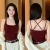Göğüs Pedli Saf Tatlı Baharatlı Kız Seksi Halter Kısa Üst Kadın Yaz Küçük Uçan Kollu Bordo Tasarım