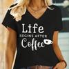 Women T Shirt Life Begins After Coffee Print Tshirt Women Short Sleeve O Neck Loose T-shirt Ladies Causal Tee Shirt Tops