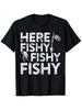 Summer Casual Graphic Tee - Men's "Here Fishy Fishy" Black T-Shirt - Round Neck, Short Sleeve with Colorful Fishing Rod Print